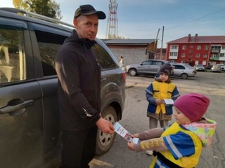 Подготовишки с самого утра вручали памчтки водтелям "Водитель, обращаюсь к тебе!"