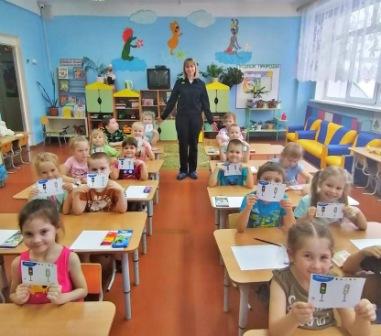 В завершении познавательного занятия автоинспектор вручила ребятам раскраску с изображением светофора, чтобы каждый дети смогли закрепить свежие знания.