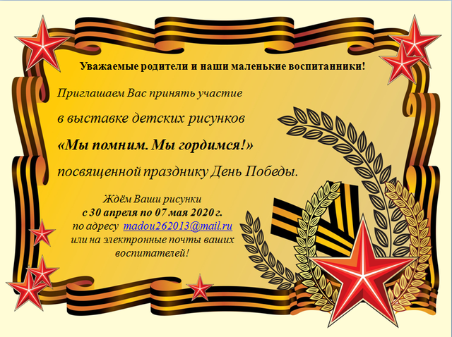 Мы приглашаем воспитанников старших и подготовительной групп принять участие в дистанционном Конкурсе чтецов, посвященного Дню Победы!